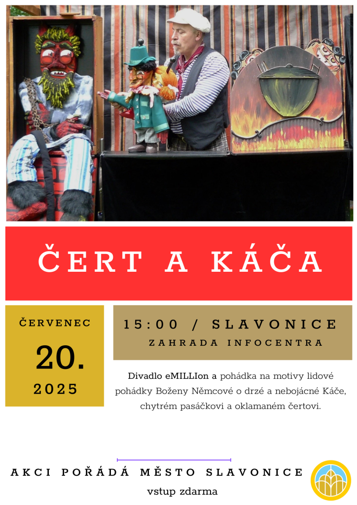 Město Slavonice pořádá 20. července 2025 pohádky Boženy Němcové o drzé a nebojácné Káče a další příběhy jako o chytrém pasáčkovi a oklamaném čertovi. Akce se uskuteční v zahradě infocentra a je zdarma.